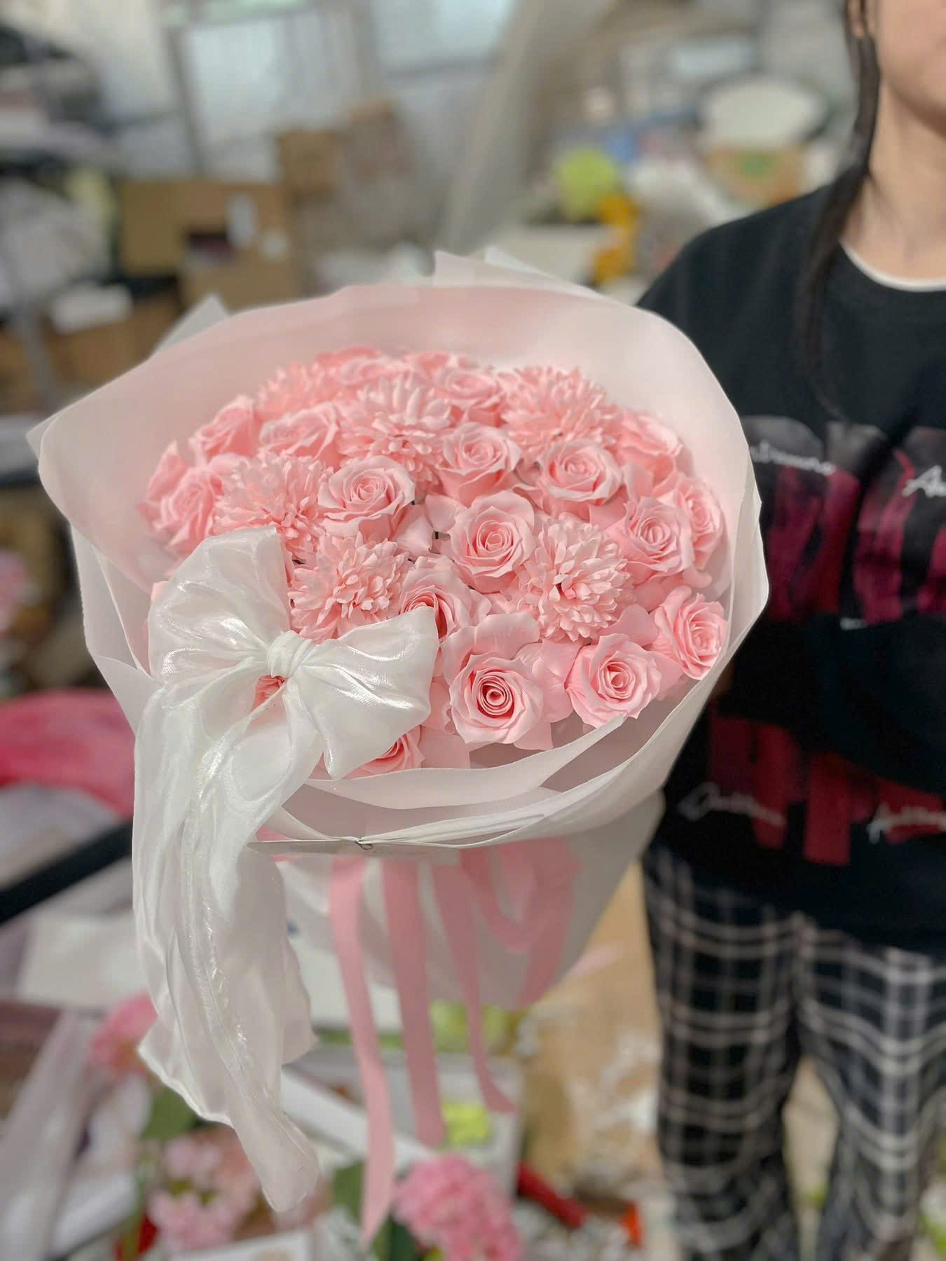 Bó hoa vũ nữ hồng – nơ xinh yêu 2026